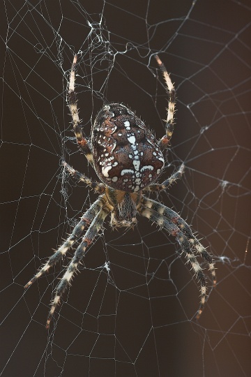 By the way Am vorletzten Sonntag hatte eine ziemlich fette Gartenkreuzspinne unsere Balkontüre zugesponnen und sich mitten hinein plaziert - frech. Freilich habe ich ihre Haltefäden Stück für Stück durchtrennt und langsam hatte sie eingesehen, dass sie besser den Rückzug antreten sollte. Aber sie wollte ins Wohnzimmer, da musste ich ihr eine andere Richtung vorschlagen, grundsätzlich zum Geländer und hinunter in die Wiese. Da hat doch jeder seinen Lebensraum und die Spinne sicherlich einen besseren Jagderfolg. Zeuss lag am Balkon und beobachtete, wie ich die Spinne langsam aber sicher zum Geländer hinaus scheuchte. Aber mehr Interesse zeigte der Kater nicht, kaum war die Spinne weg, schlief er wieder ein. Nachtrag: Die Spinne hat nun ihr Netz vom Balkon über uns zu uns herunter gesponnen und sitzt nun dort mittendrin. |